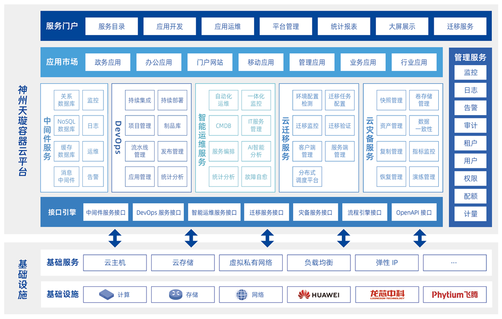 全栈自主可控的企业级容器云服务平台,,,开箱即用的企业级多云管理、、、业务迁移上云、、、、云上开发测试、、、、运维管理及容灾备份功能特性,,,,模块化按需部署,,降低建设成本,,随业务需求灵活扩展。。。。