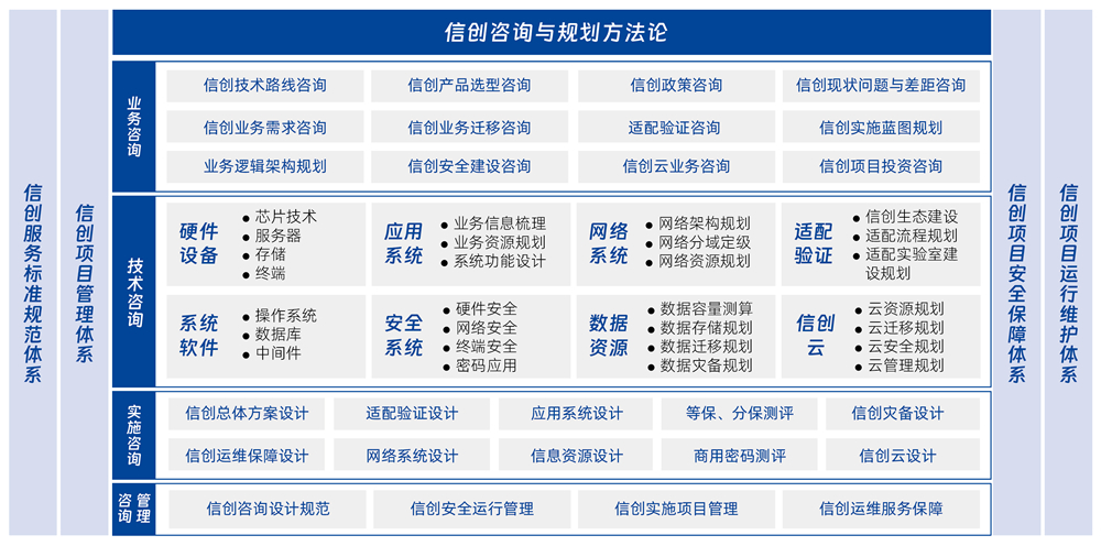 标准化的信创顶层咨询和规划设计流程,,指导信创项目过程服务规范化,,,,标准化。。。。提高信创项目实施成功率。。。。