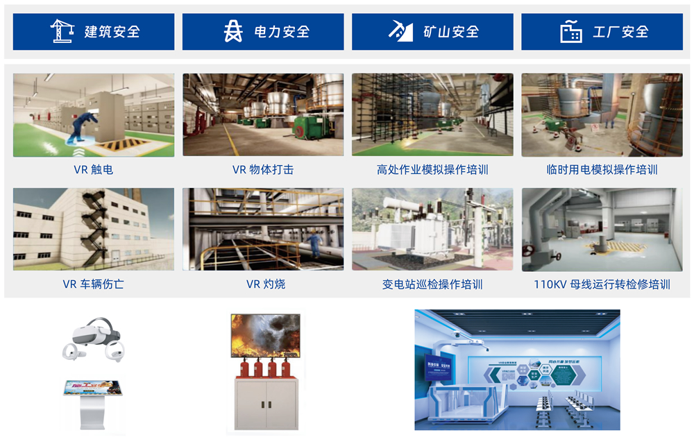 VR 临境式实训安全教育系统,,,,以现实培训环境为基础,,,基于沉浸式虚拟互动仿真技术搭建典型行业作业场景,,,,让学员置身于各种复杂、、难度不一的生产虚拟场景中,,,在确保人身安全的前提下进行高仿真的模拟培训,,有效提升学员的应变能力和实操技能,,提升培训效果,,,,突破时空限制,,,,降低培训成本。。